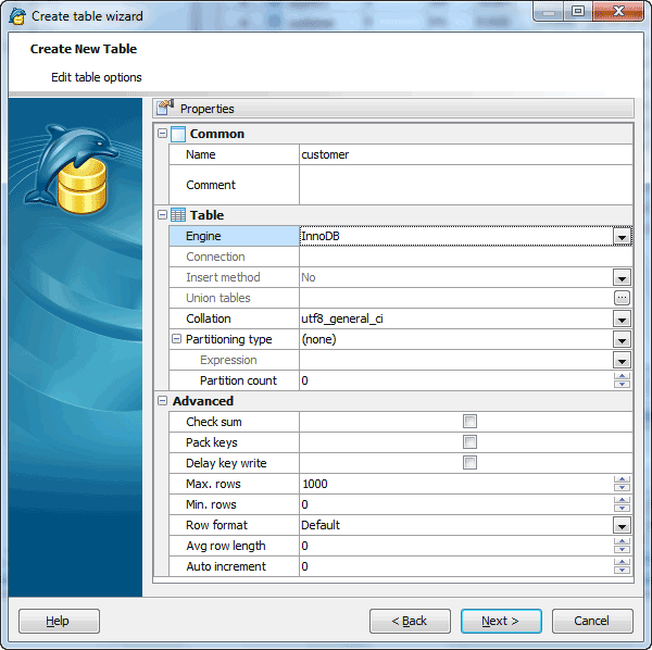The basic principles of Create Object Wizards in SQL Maestro for MySQL are explained in a separate topic. Below you will find a description of wizard steps that are unique for the current object.