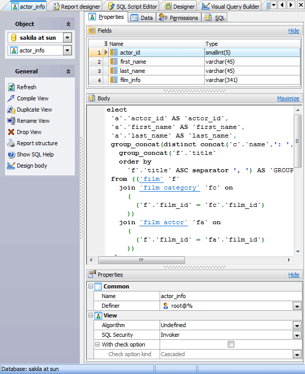 View Editor allows you to edit the existing view definition (view name and the SELECT statement it implements).