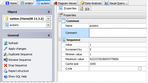 This field stores a comment to the sequence. Value contains the starting sequence value here.