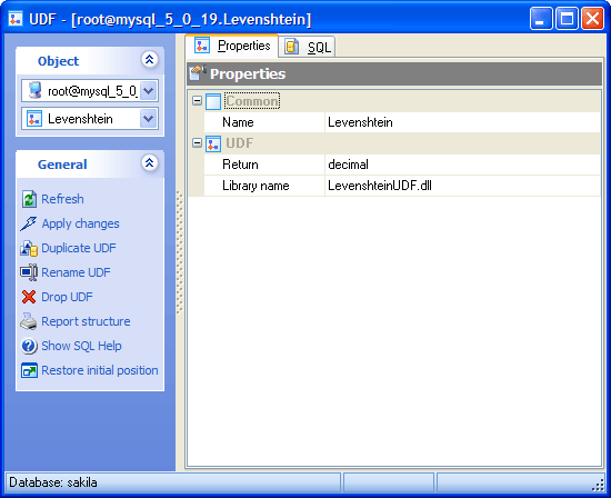 UDF Editor is the basic SQL Maestro for MySQL tool for working with existing user-defined functions. It can be open automatically after the UDF is created and is available on editing the UDF (see How to edit UDF for details).