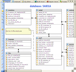 your database and the relationships between them. This tool is intended for reverse engineering and database modification