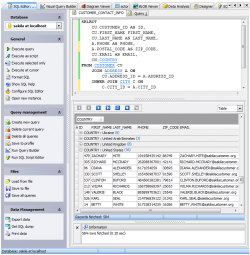 The editor allows you to create and edit SQL text for the query, prepare and execute queries and view the results of execution. It also includes such useful features as syntax highlighting, links and code auto completion.
