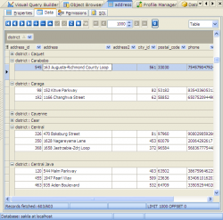 SQL Maestro for MySQL provides you with powerful tools for viewing, editing and printing data from tables and queries. Click the column caption to sort data by the column values in the ascending or descending mode. You can also group grid data by any of the columns by dragging the column header to the destination area as well as filter records in the grid. |