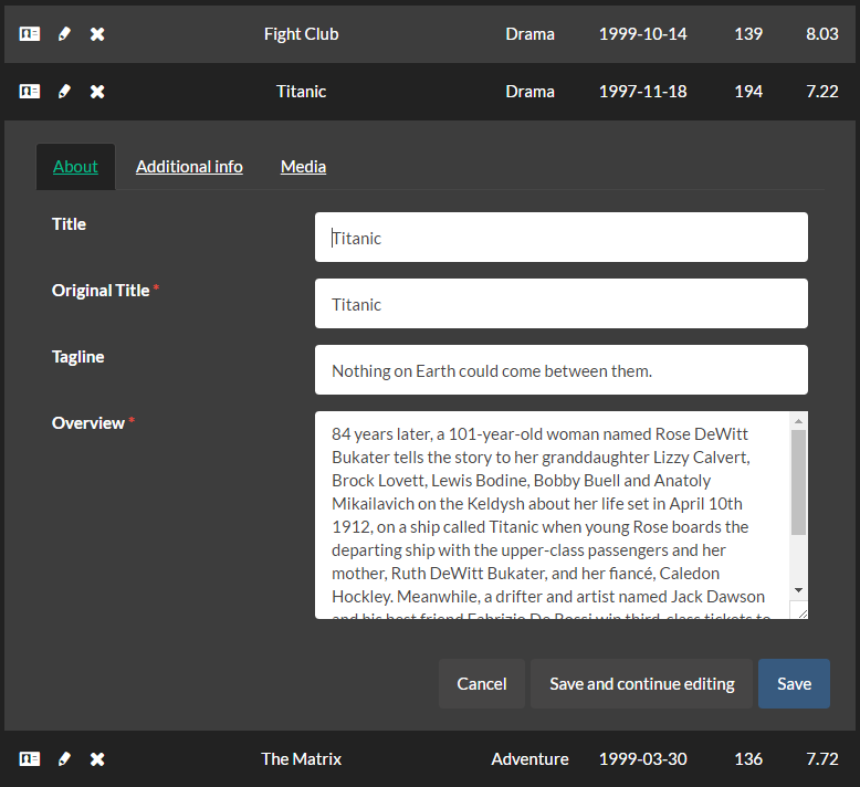 Detailed info