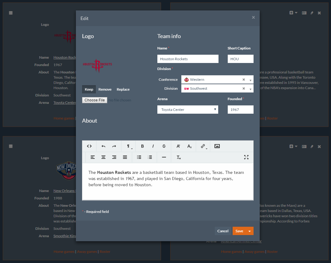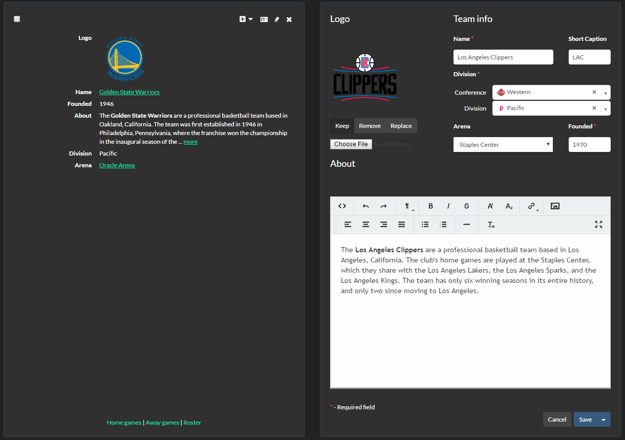 Unlimited flexibilityTune your websites according to your needs with color themes, custom templates, additional styles and JavaScript, user-defined events, and built-in developer API. |