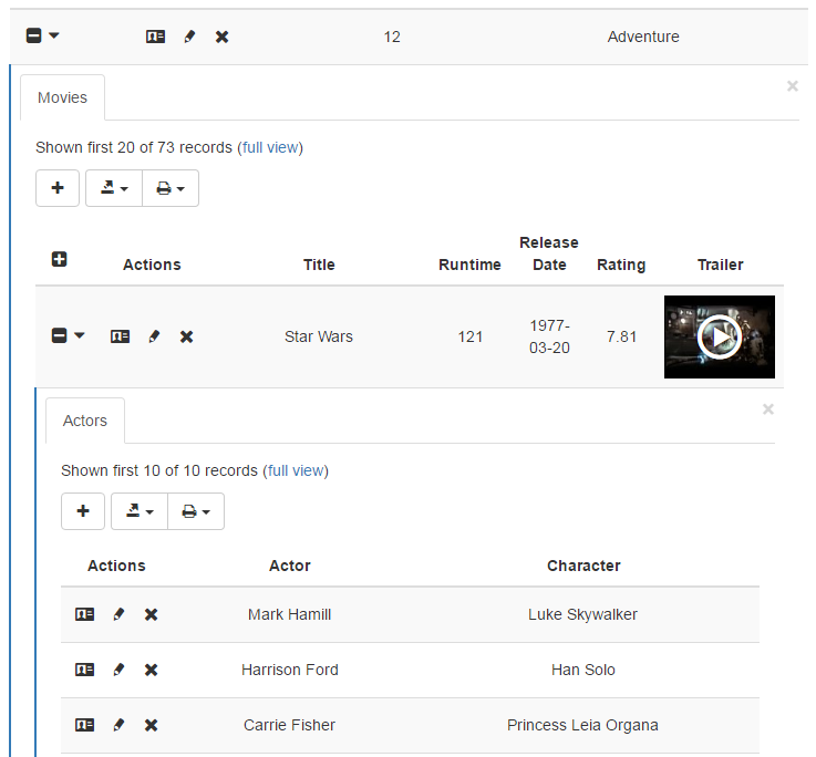 Master/detail viewsPHP Generator for MySQL supports master-detail views with unlimited nesting. |
