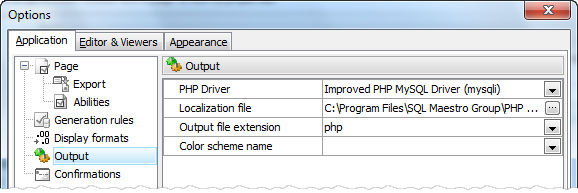 There are several PHP drivers to communicate with database servers and PHP Generator for MySQL allows you to select a driver to be used by the generated web application. Note that the corresponding set of PHP functions should be available on your web server.