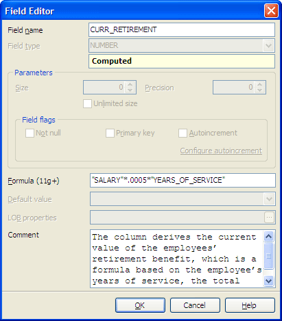 The Comment box allows you to set optional text describing the field.