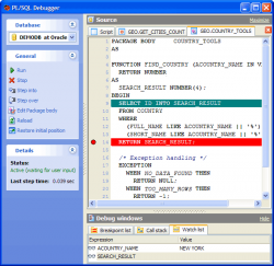 The PL/SQL Debugger tool allows you to debug PL/SQL code such as procedures and functions (both stand-alone and packaged) using traditional debugging features such as setting breakpoints, viewing variable values, and examining the call stack.