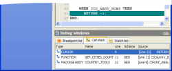 When an exception occurs, the PL/SQL Debugger will take you to the line that causes it and you are able to view variable values at the time of the exception. This can obviously be very helpful to find the cause of the exception. |
