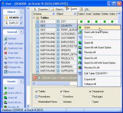 Oracle Maestro allows managing access privileges (Grants) for Oracle users in the simplest way.