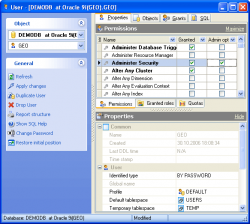 Oracle Maestro provides the easy-to-use graphical interface to manage Oracle principals (Users and Roles) and their privileges.