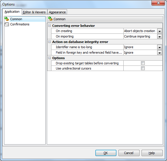 This option defines whether the application will change the data type of the foreign field to the data type of the referenced field automatically or will ignore this integrity error.