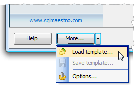 PostgreSQL Data Wizard allows you to save and restore all options set during a wizard session. You need not to specify all session parameters each time you work with a wizard anew; instead you can load all settings from a template and change them if necessary. To create a template, walk through the wizard and click More > Save Template at the last step. All the settings you have made will be saved to a file. To restore previously saved settings from a template, click More > Load Template at the first wizard step.