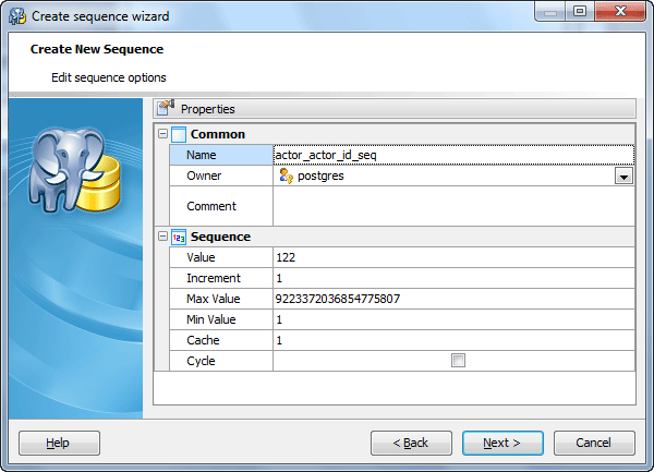 Sequences may be created with Create Sequence Wizard. Just specify the wizard options according to your needs.