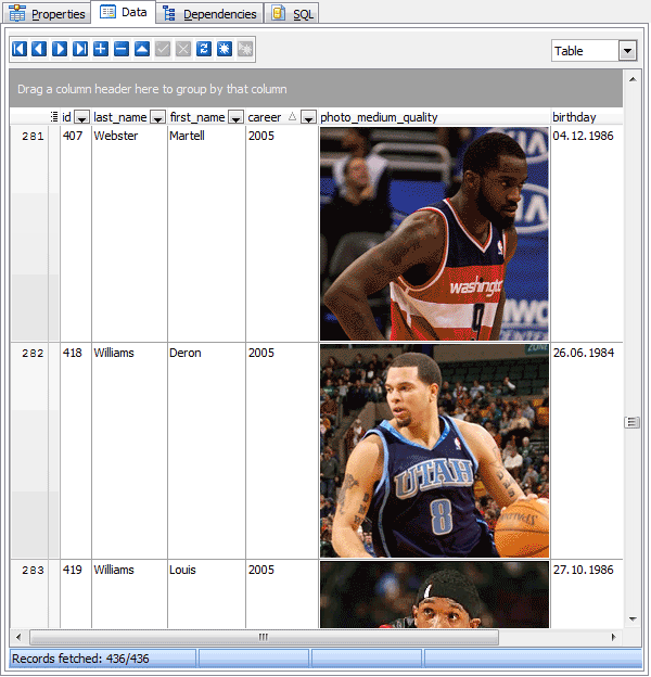 The Data tab displays the foreign table data as a grid or as info cards (see Data View for details). To edit/add a table record, use Data Input Form or type the new data directly in the grid (card). To export/import/get SQL dump of the foreign table data, invoke corresponding modules from the grid's popup menu. To view and edit the content of BLOB columns, run BLOB Editor.