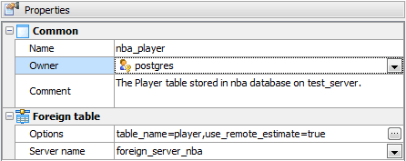 Foreign table properties