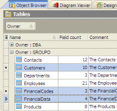 ASA Mastro: along with sorting, grouping and filtering abilities Object Browser allows you to select several database objects to perform the same operation upon all of them at a time.