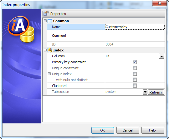 Table indexes are created within the Index Properties dialog window. In order to open the dialog you should either