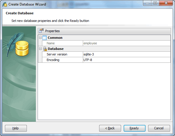 You can also specify the encoding (UTF-8 or UTF-16) for the new database.