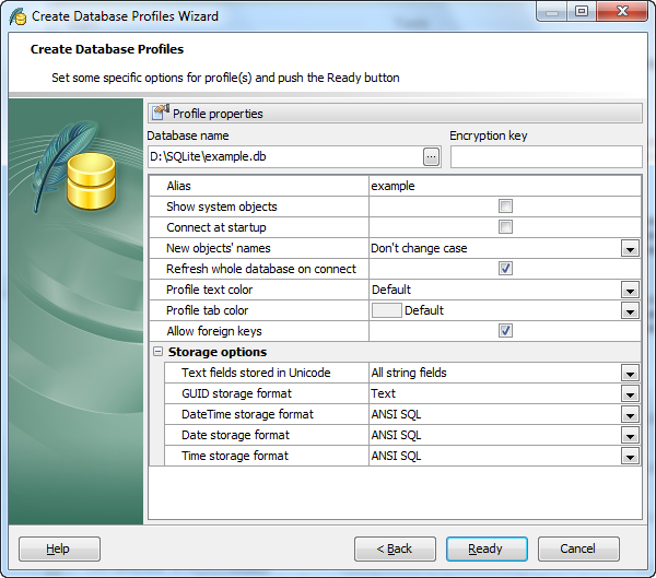 Use Storage options to define the way data is stored in the database. These options determine the correct work of SQLite Maestro with text and GUID columns, and also Date, Time and Datetime stored as Julian or Unix time.