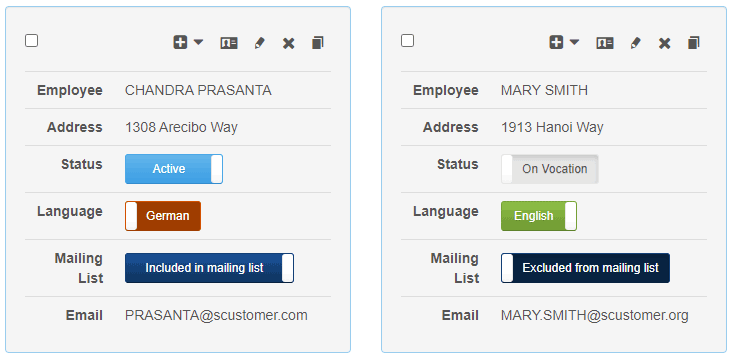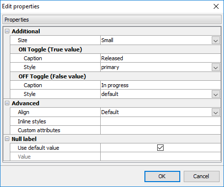 • Support for Toggles has been implemented. This control allows to represent logical column values in a comfortable view and to change them in one mouse click directly in data grid and cards. Text, size and style of toggles are customizable.