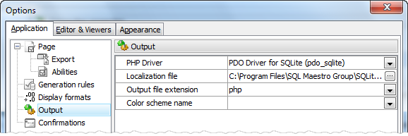 There are several PHP drivers to communicate with database servers and SQLite PHP Generator allows you to select a driver to be used by the generated web application. Note that the corresponding set of PHP functions should be available on your web server.