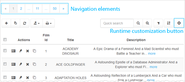 Select whether the Edit, View, Delete, and Copy buttons to be displayed on the left side of the generated page or on the right side. Live Example.
