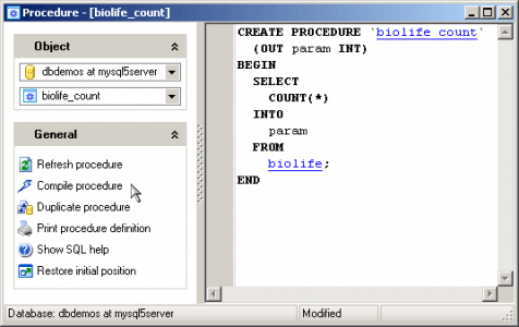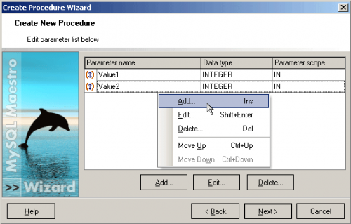 Creating procedures is becoming simple with MySQL Maestro's Create Procedure Wizard that guides you through the process of creating a new stored procedure.