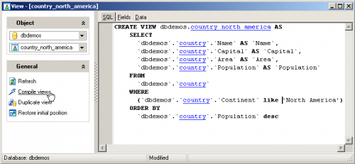 Use of views becomes much easier with help of MySQL Maestro's View Editor. This editor allows editing the existing view definition.